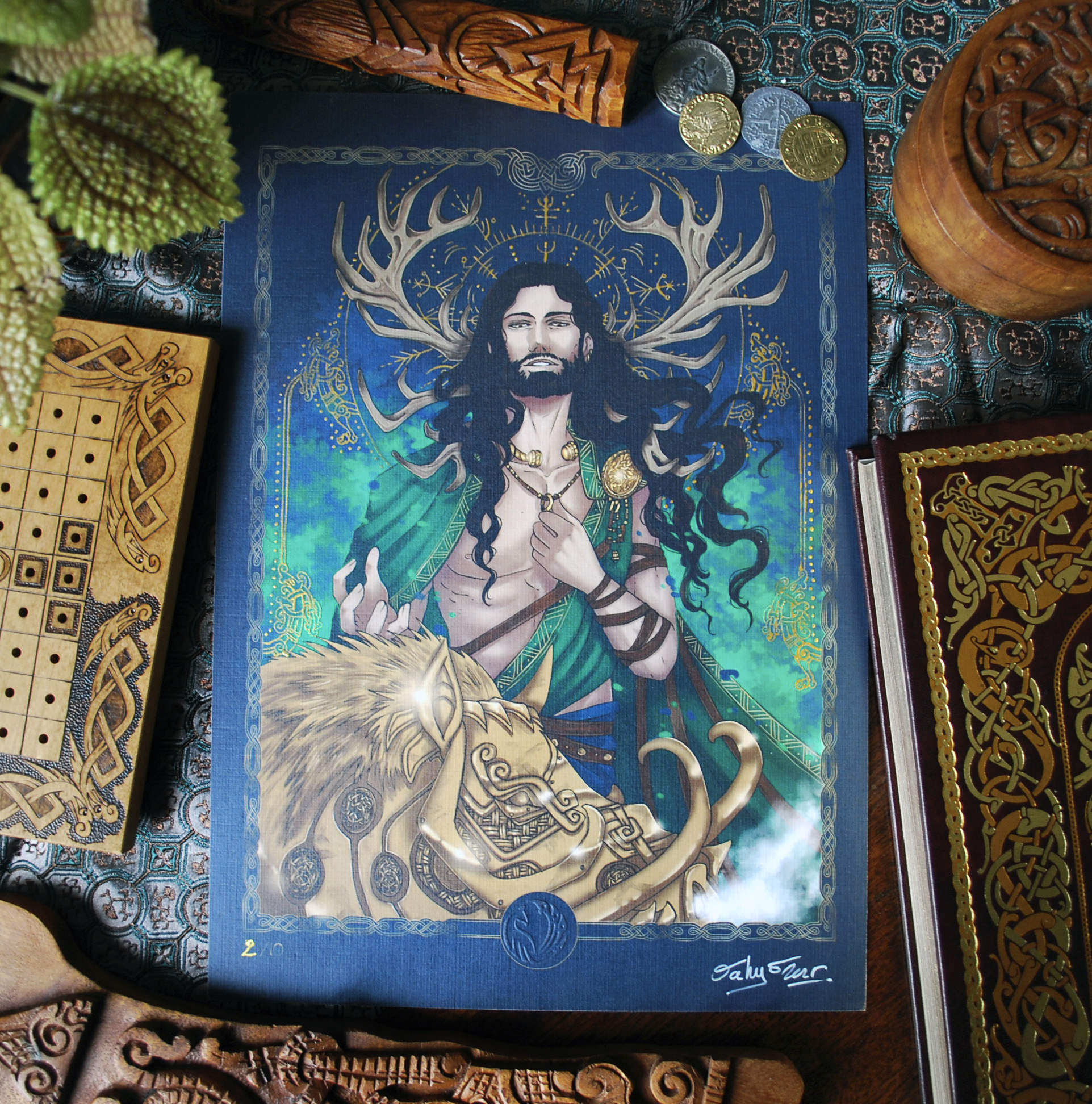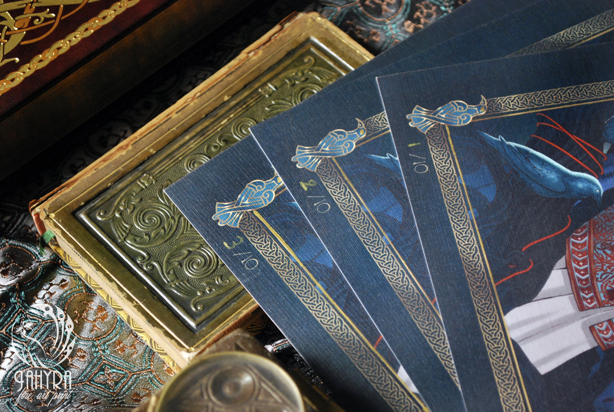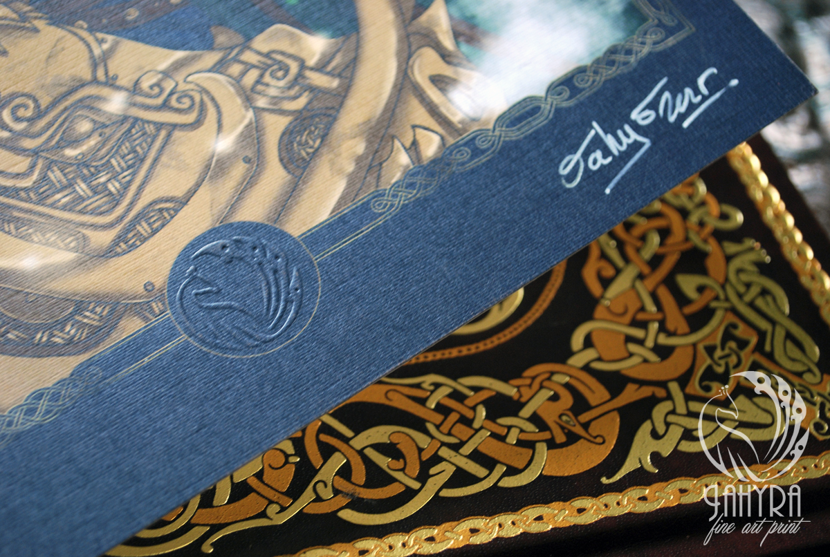Série limitée à 10 exemplaires signés, embossés dans le coin droit et numérotés, réalisée spécialement pour la sortie des « Trésors de la mythologie Scandinave » paru chez les éditions du Héron d’Argent.