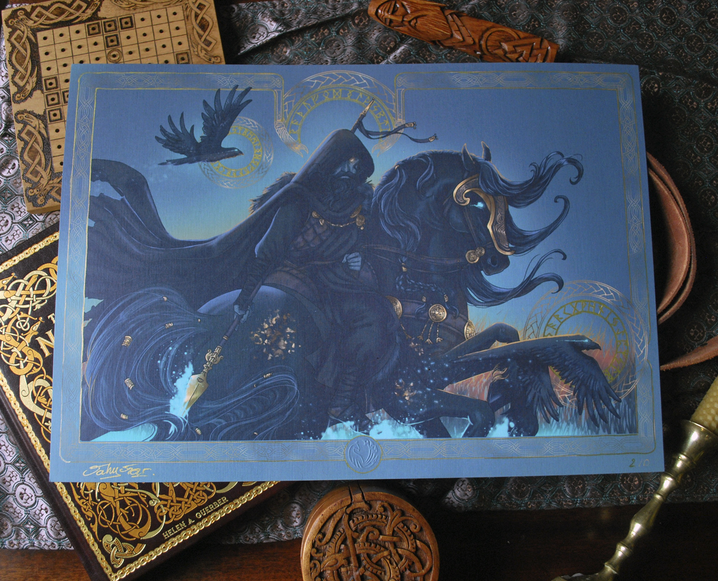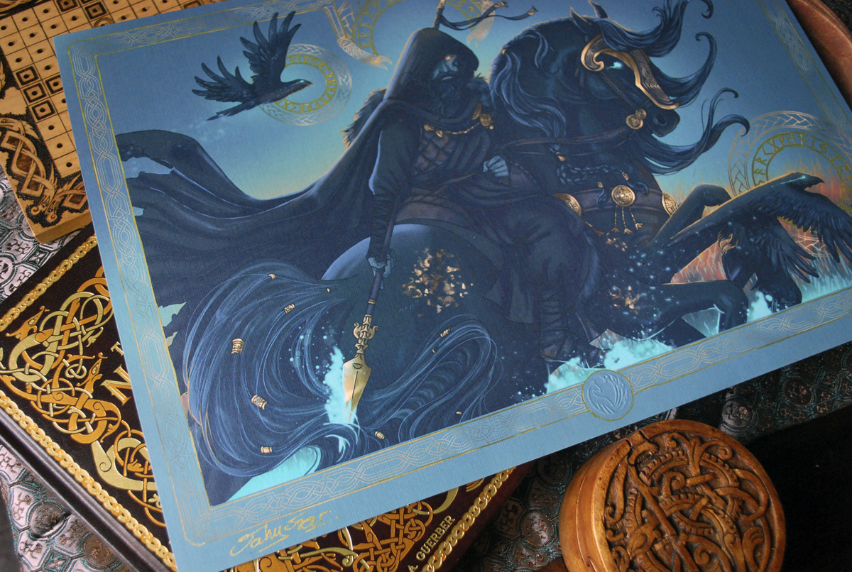 Série limitée à 10 exemplaires signés, embossés dans le coin droit et numérotés, réalisée spécialement pour la sortie des « Trésors de la mythologie Scandinave » paru chez les éditions du Héron d’Argent.