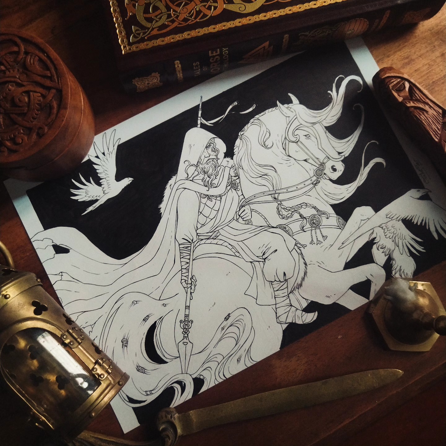 Original format A4 à l’encre. Issu du travail pour « les Trésors de la Mythologie Scandinave » (éditions le Héron d’Argent)